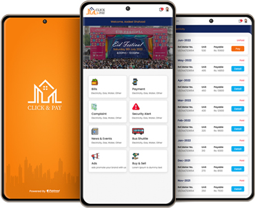 A Click & Pay is an app that unravel life for everyone in a gated community, from residents and management team members to facility managers. It manages society accounts and payments, complaints status and keep the community aware of all that’s going on in the society such as some event.